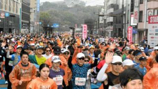 最新ニュース 1万4518人が城下疾走、熊本城マラソン 沿道の観衆から声援