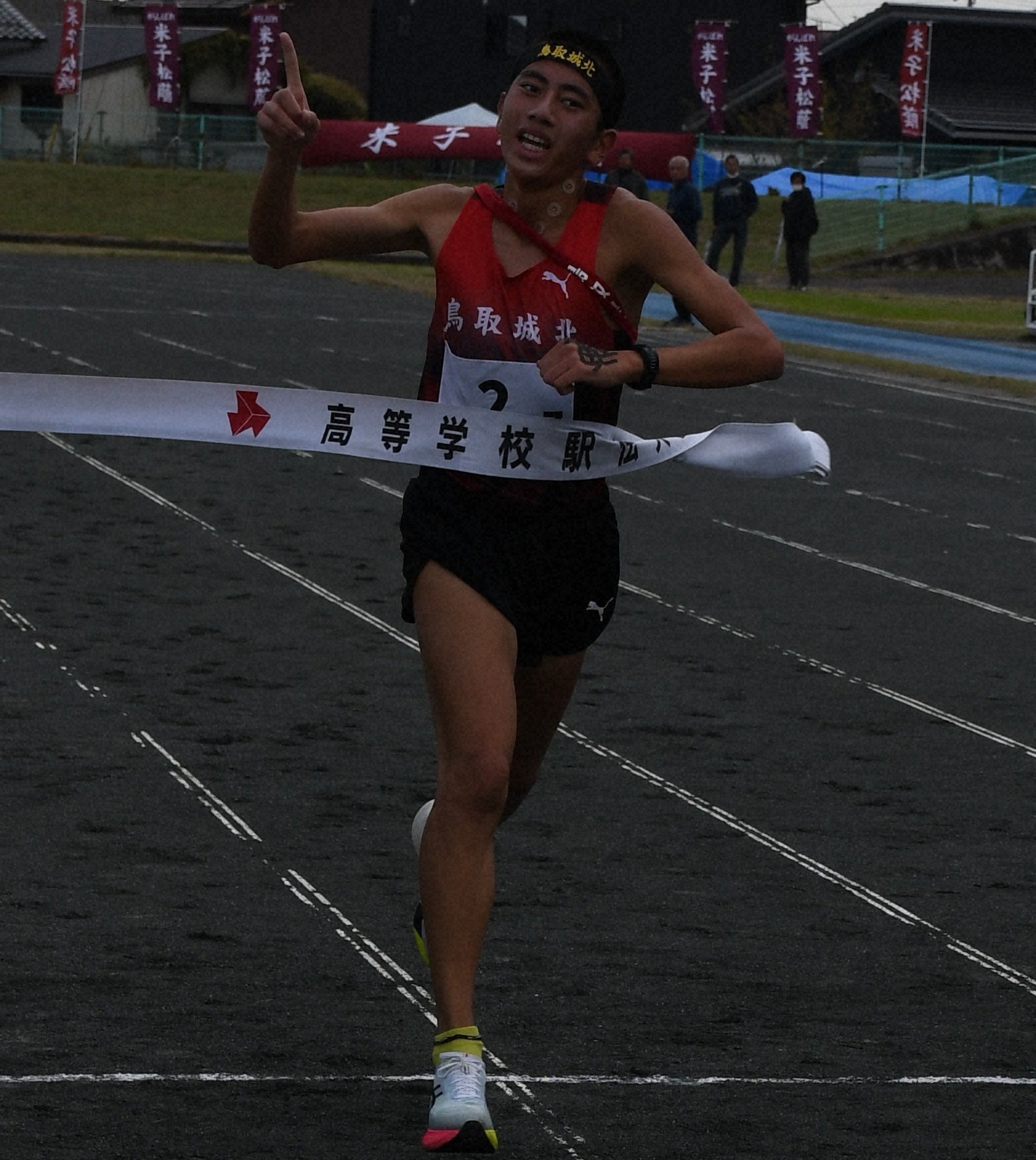 男子第76回、女子第37回全国高校駅伝競走大会鳥取県予選(県高体連主催、毎日新聞社鳥取支局など後援)が1日、境港市営竜ケ山陸上競技場を発着点に開かれた。男子(7区間、42・195キロ)は12チーム(合同1チーム含む)が出場し、鳥取城北が大会新記録で2年ぶり9回目の優勝を果たして全国大会出場を決めた。