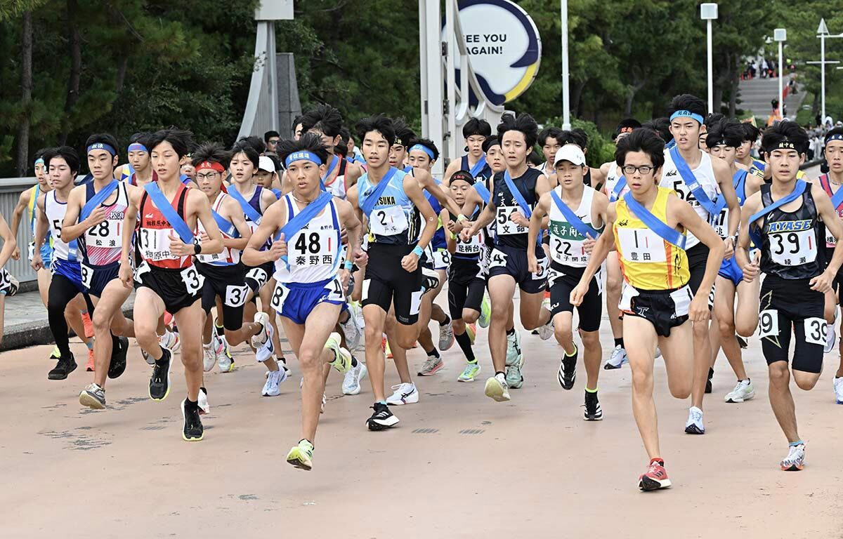 男子第47回、女子第40回県中学校駅伝競走大会は1日、横浜市金沢区の横浜八景島・海の公園周回コース(男子6区間=17・20キロ、女子5区間=11・93キロ)で行われた。男子は成瀬が53分53秒で34年ぶり、女子は松浪が41分30秒で初めての優勝を飾った。