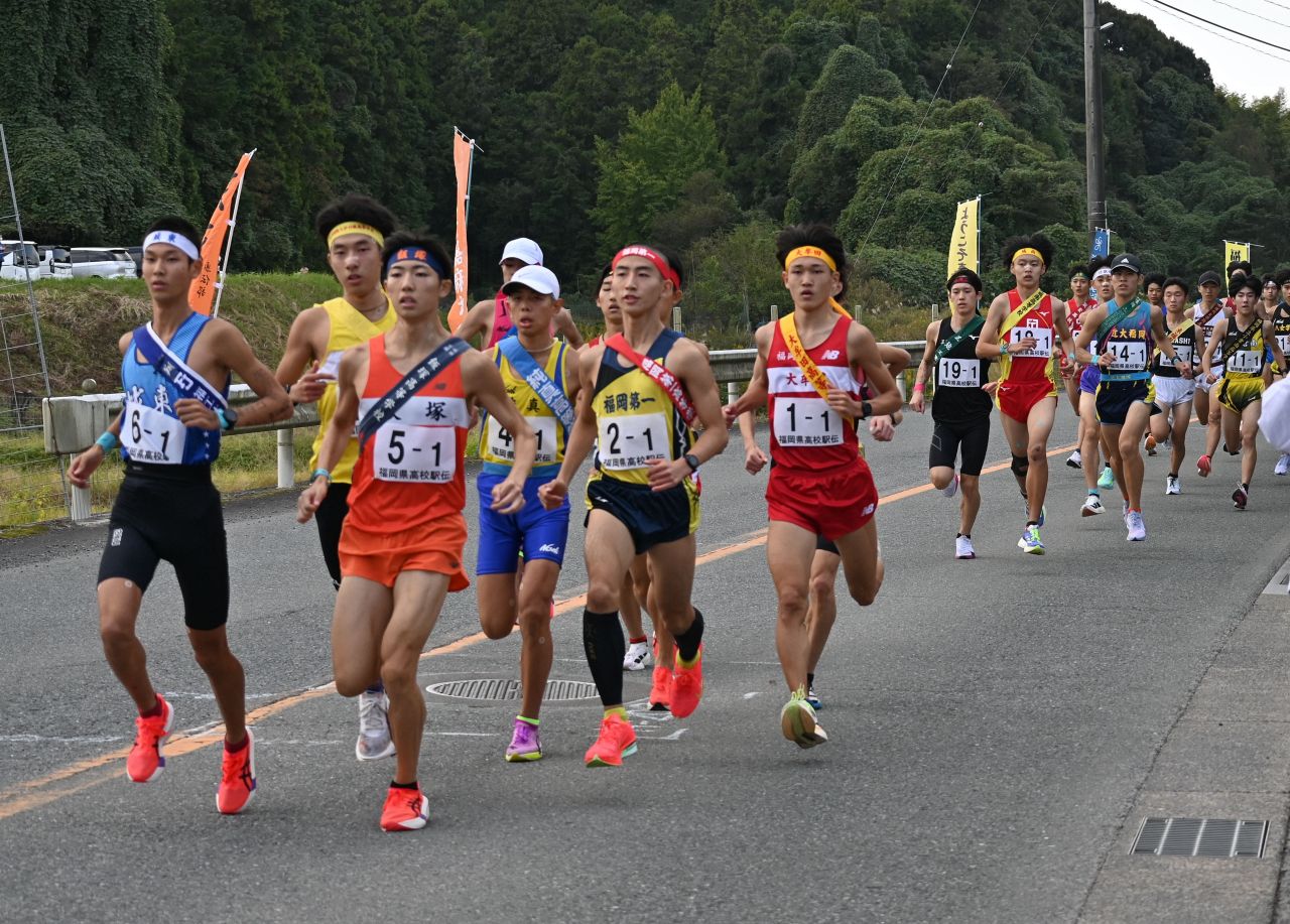 1区は飯塚の松尾翼(3年)が区間賞を獲得し、2位に40秒差をつける好スタートを切った。2区で福岡第一のパレイヨ・アントニーイタ(1年)が区間賞に輝いて逆転。4区で飯塚が追い付くと、5区以降は激しい競り合いが続いた。6区で福岡第一が前に出ると、そのまま逃げ切った。
