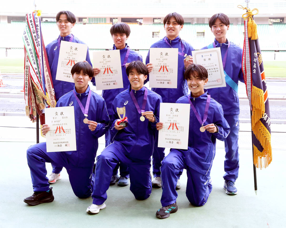 ◇男子区間賞 ▽1区(10キロ)金子空楓(浜松開誠館)30分44秒▽2区(3・05キロ)梁瀬伊織(藤枝明誠)9分1秒▽3区(8・0475キロ)柘植源太(浜松日体)25分15秒▽4区(8・0975キロ)佐藤瑞城(浜松日体)24分55秒▽5区(3キロ)藤田晴亮(浜松日体)8分55秒▽6区(5キロ)石田悠翔(浜松日体)15分18秒▽7区(5キロ)高橋柊音(藤枝明誠)15分38秒
