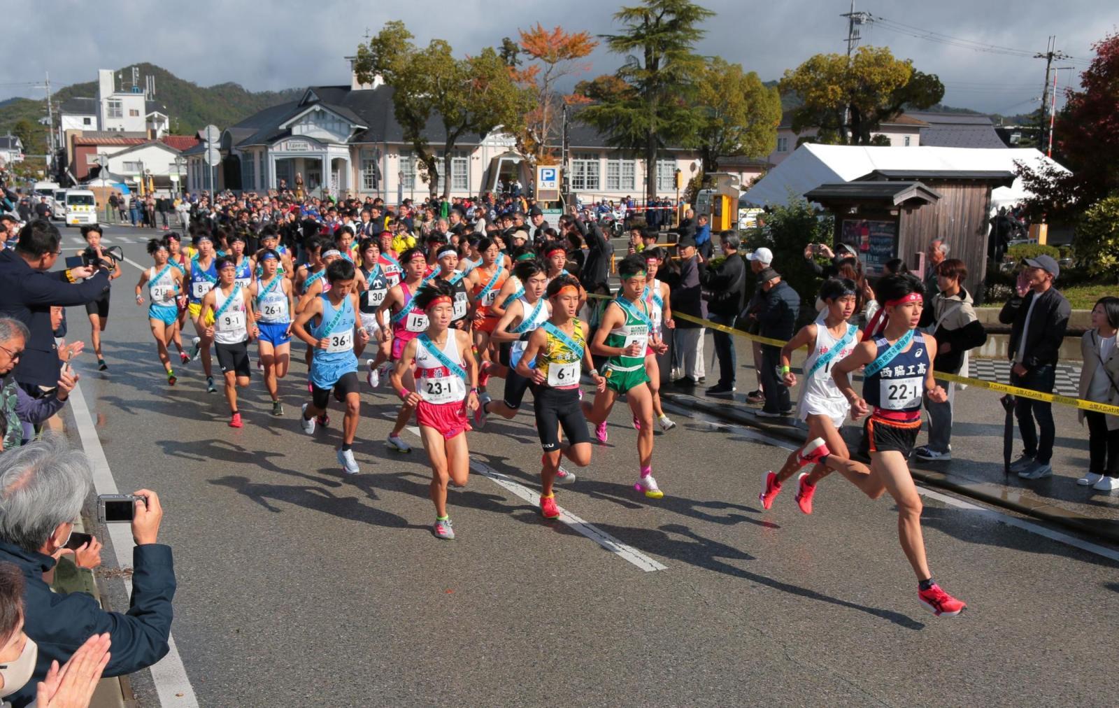 兵庫県高校駅伝(神戸新聞社後援)は3日、丹波篠山市で男子(7区間42・195キロ)、女子(5区間21・0975キロ)の1区がスタート。男子の1区(10キロ)は西脇工の新妻遼己が28分22秒の区間新記録を達成した。これまでの28分31秒(2022年の長嶋幸宝=西脇工)を更新した。