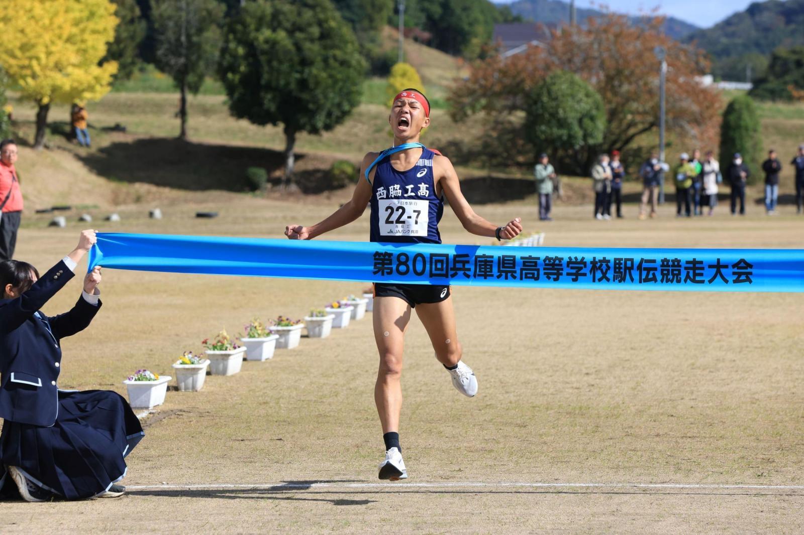 兵庫県高校駅伝(神戸新聞社後援)は3日、丹波篠山市の大正ロマン館前をスタート、篠山鳳鳴高校でフィニッシュするコースで行われ、7区間42・195キロで争った男子は、西脇工(新妻遼己、中道琉惺、新妻昂己、佐伯優月、岩崎奏、岸本周真、七條拓也)が2時間3分25秒の大会新記録で2年連続30度目の優勝を飾った。従来の大会記録は、2時間3分31秒(2022年・西脇工)。2位は須磨学園、3位は報徳。