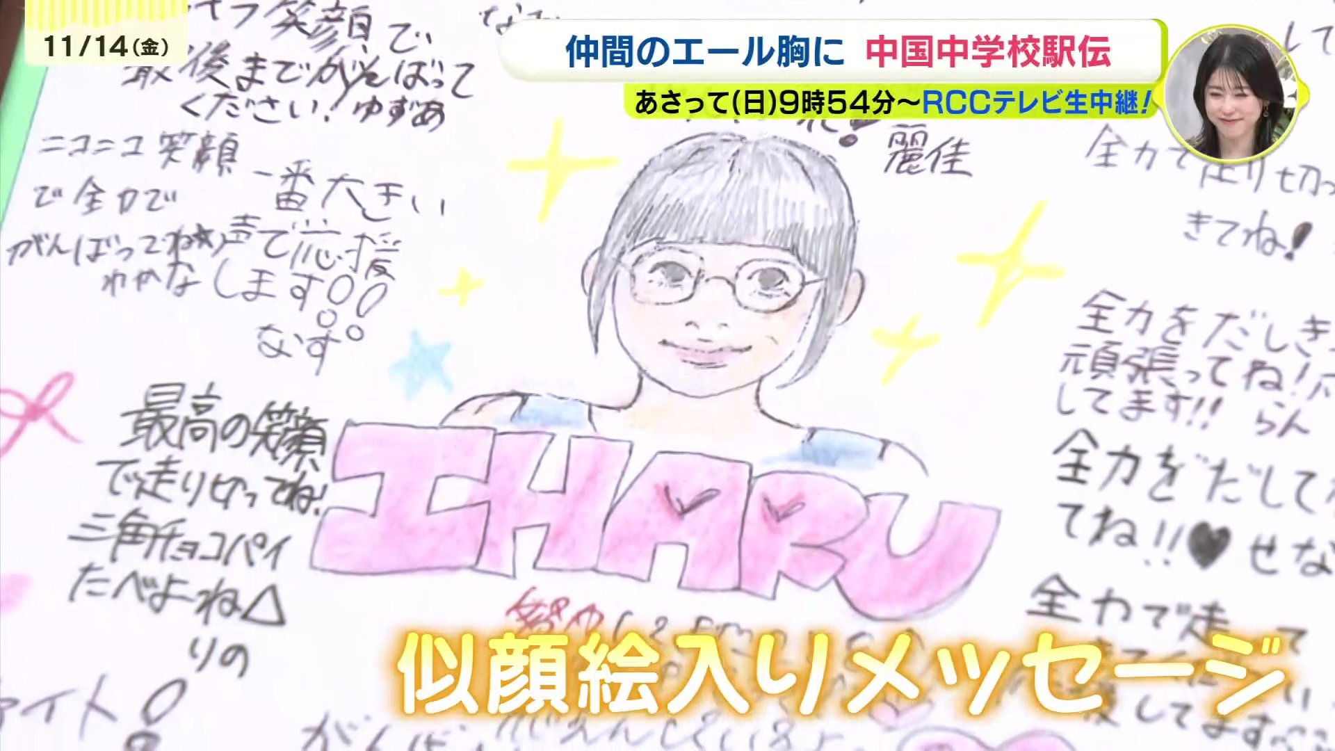 似顔絵メッセージでチーム一丸 16日号砲 中国中学校駅伝 広島市立江波中学校