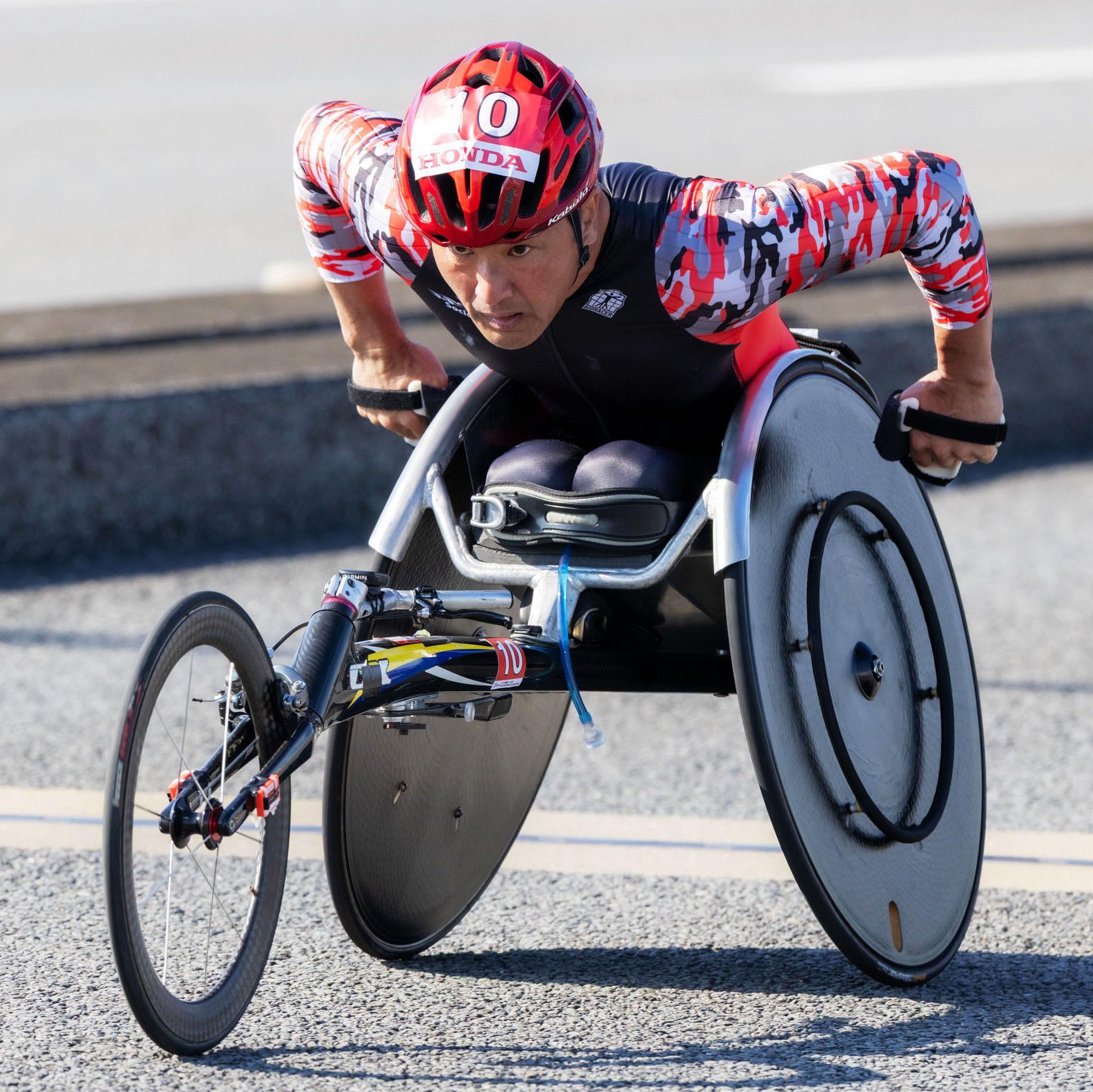 パラリンピックに4度出場し、ボストン、ベルリンなど世界最高峰のワールドマラソンメジャーズで優勝を重ねてきた副島正純選手(55)が16日、大分国際車いすマラソンで1時間38分55秒・15位で完走した。