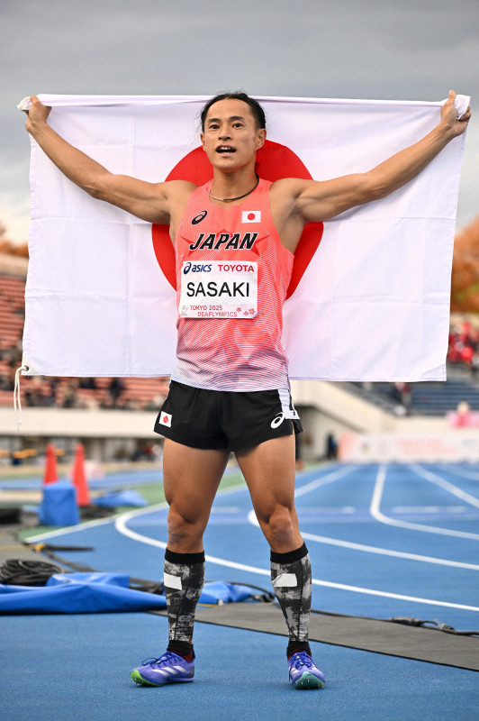 東京デフリンピック第4日は18日、駒沢陸上競技場で陸上男子100メートル決勝があり、連覇を目指した日本の佐々木琢磨選手(仙台大職)は3位だった。