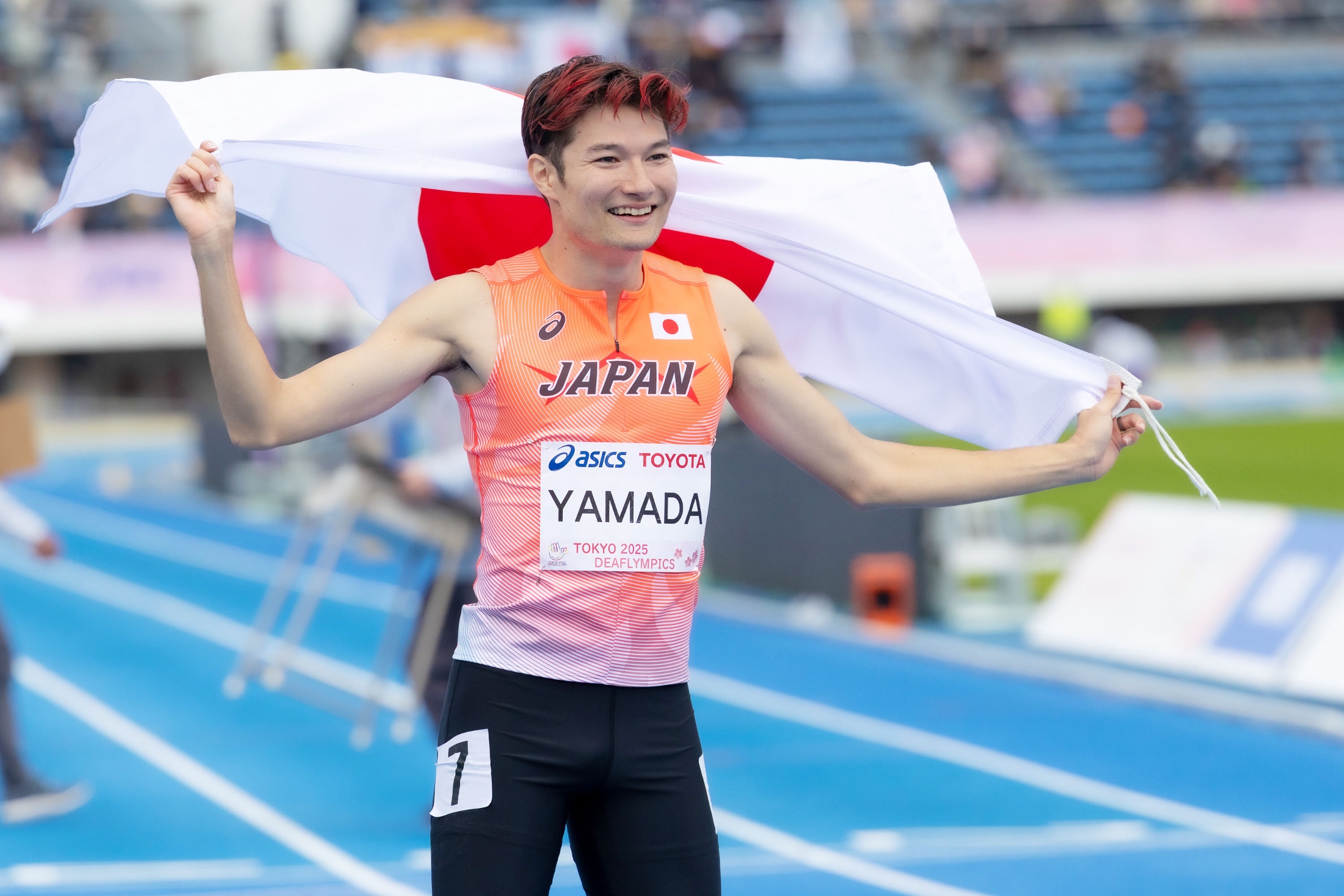東京で開催されている聴覚障害者スポーツの祭典「東京デフリンピック」は23日、駒沢陸上競技場で陸上男子200メートル決勝が行われ、山田真樹(ぴあ)が21秒61のデフ陸上日本新記録を樹立し、銀メダルを獲得した。
