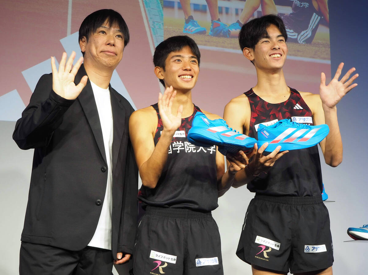 陸上、国学院大の前田康弘監督、主将の上原琉翔(4年)、野中恒亨(3年)は25日、都内で行われた「ADIDAS EKIDEN DAY」に出席し、アディダスの駅伝シューズについてトークショーを行った。