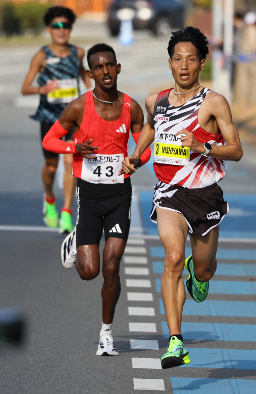 届きそうで、届かない。トップのエチオピア選手を追い、西山雄介(トヨタ自動車)は2位でフィニッシュ。「優勝だけを狙っていた。非常に悔しい」。笑顔はなく、淡々とレースを振り返った。