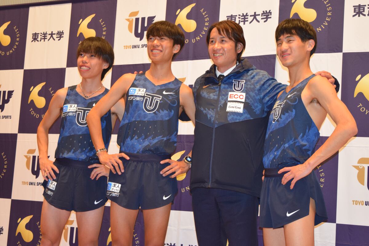 来年1月2、3日に行われる「第102回東京箱根間往復大学駅伝競走(往路107.5キロ、復路109.6キロ)」に向けて、前回総合9位の東洋大が8日、東京・文京区の白山キャンパスで壮行会と取材会を行い、酒井俊幸監督は「世間でいう6強(青学大、駒大、中大、国学院大、早大、創価大)と言われている中に東洋大は入っていない。その一角を崩して5位に入りたい」と目標を掲げた。
