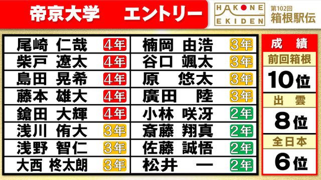 前回総合10位の帝京大学。今季は出雲駅伝で8位、全日本大学駅伝で6位でした。