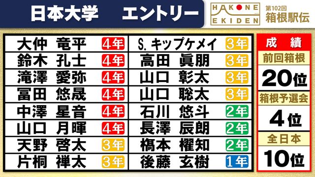 前回総合20位の日本大学は、予選会を4位で通過。11月の全日本大学駅伝では10位に入りました。