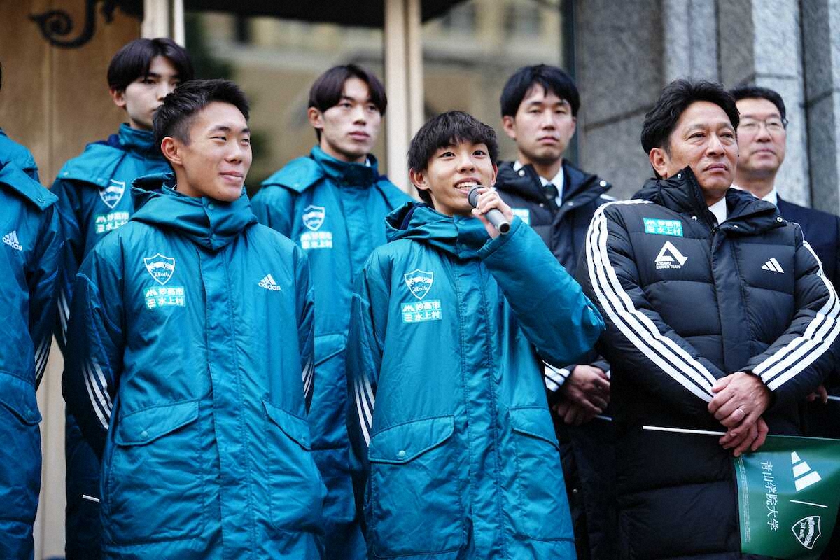 第102回箱根駅伝で3連覇を目指す青学大が11日、都内の青山キャンパスで壮行会と会見を行った。