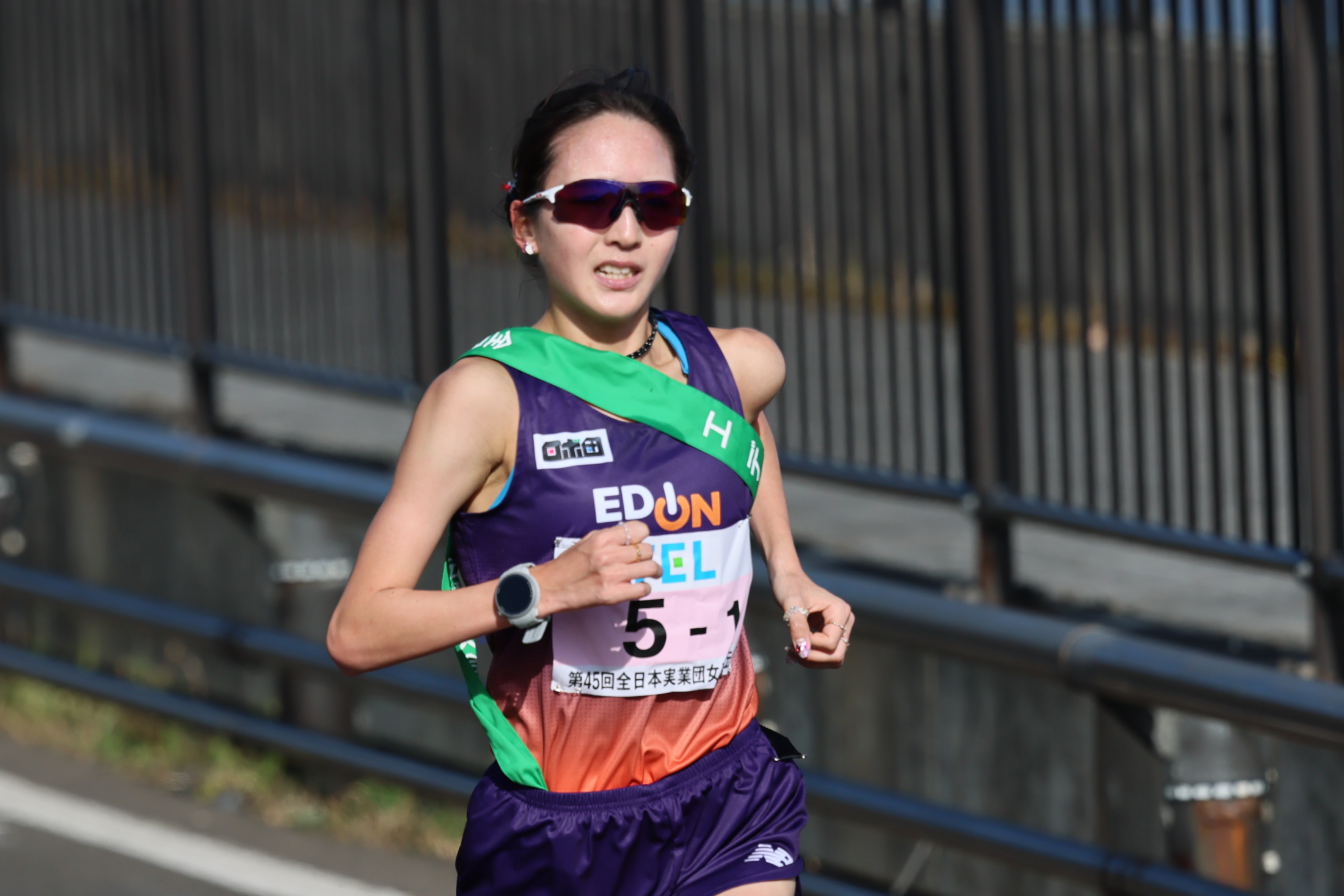そのなかでも1区の水本佳菜がスタートから積極的に前に出て、区間記録に3秒と迫った走りが大きかった。JP日本郵政グループや積水化学などの優勝候補チームや、3区に大砲を擁する資生堂に大差をつけたことで、エディオンは優位な展開に持ち込めた。