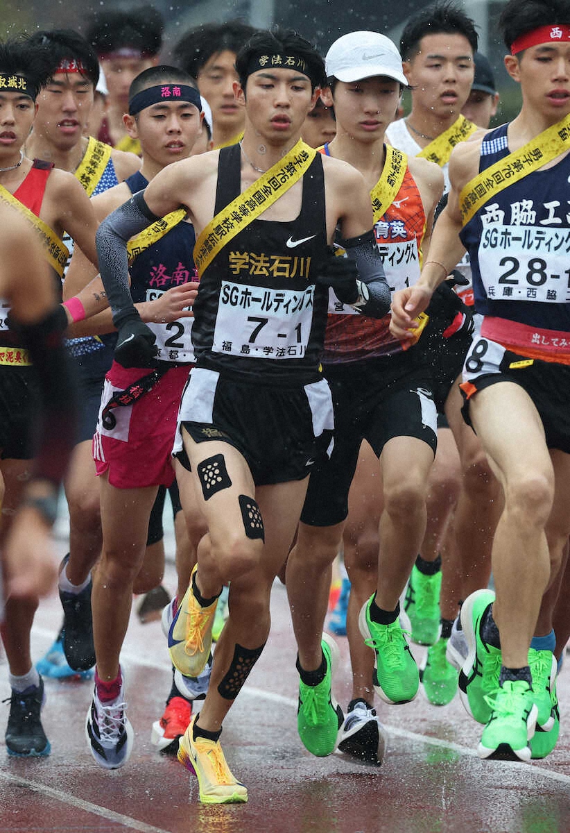 学法石川(福島)が15年連続17回目の出場で初優勝した。2時間0分36秒のタイムは高校新で大会新記録。「1強」の前評判で、2位で同じく高校新で大会新記録を更新した仙台育英(宮城)に23秒差を付けて圧勝した。10キロある1区を増子陽太(3年)が日本選手最高を更新する28分20秒で走破し、築いたリードを守り切った。
