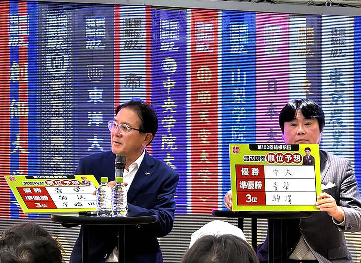 渡辺氏は「中大、青学大、駒大、ただ往路優勝は早大が間違いない」と予想。中大優勝予想に「実は青学大の原晋監督が相当意識している。前に出られたらスピードあるので」と分析。また、「私が大学4年のとき、中大が30年ぶりに優勝した。そして今回勝つとまた30年ぶり。あとは今年全国高校駅伝(都大路)で学法石川が優勝。その監督が私の1個下の中大OBの松田和宏監督なので、巡り合わせがあるのかな」と語った。