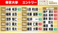 3連覇がかかる青学大は、前回大会で区間新記録を打ち立てた若林が卒業。今回は誰が走っても初出走となる中、1年生の松田を登録した。直近11大会で8度総合優勝に導いた原監督は「秘密兵器。前回大会並みの走りを期待している」と自信を示している。