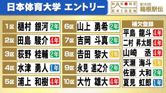 ◇日本体育大学の区間エントリー