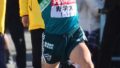 当日変更で1区に起用された青木。序盤は最後方。異変が起きたか心配されたが、集団に復帰すると17キロ手前で先頭へ。ガッツポーズを何度も見せる余裕を見せ、21.3キロを駆けた。