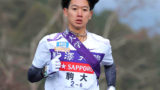 8区で前回まで2年連続区間賞を獲得した塩出翔太(4年)が貫禄の走り。9区の佐藤有一(4年)にタスキをたくした。