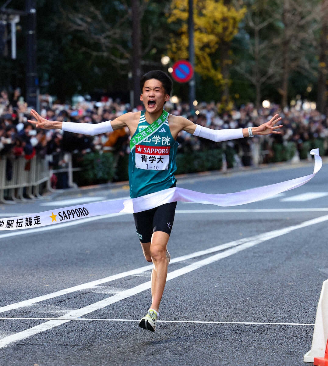 7区の佐藤愛斗(2年)も堅実は走りでトップを維持すると、8区の塩出翔太(4年)が区間新の1時間3分46秒をマーク。塩出は同区間で3年連続区間賞の快挙を達成した。
