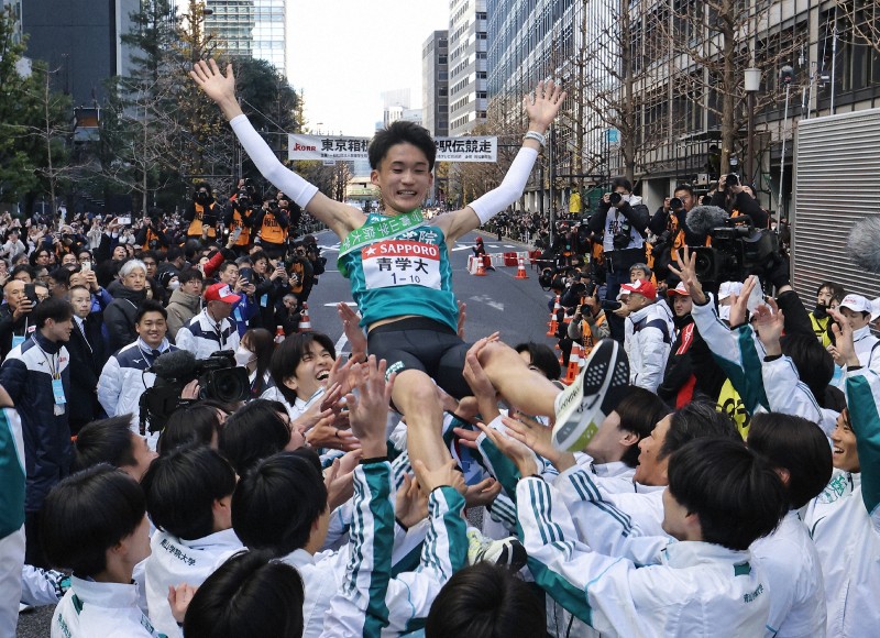 A 青山学院大学です。10時間37分34秒というタイムで、これまでの大会記録を大きく更新しました。3年連続9度目の総合優勝で、2度目の3連覇は史上初めてです。