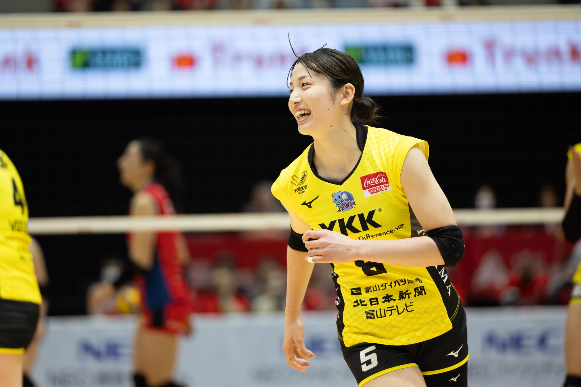 NEC川崎とのGAME2、形勢が不利になったアクアは畑葵を第1セット途中から投入。畑はしなやかな獣のように助走し、火の玉のようにスパイクを打った。