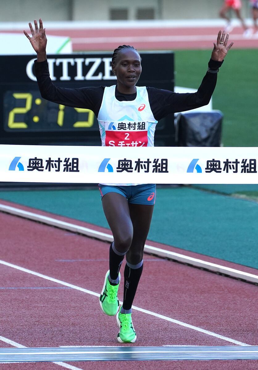 勝利の喜びをかみしめながら両手を広げ、ゴールテープを切った。2時間17分55秒の記録を持つエデサら実力派のエチオピア勢2人、日本の新鋭・矢田に競り勝ち、2度目の浪花路で初めての女王に輝いたチェサンは静かにほほえんだ。