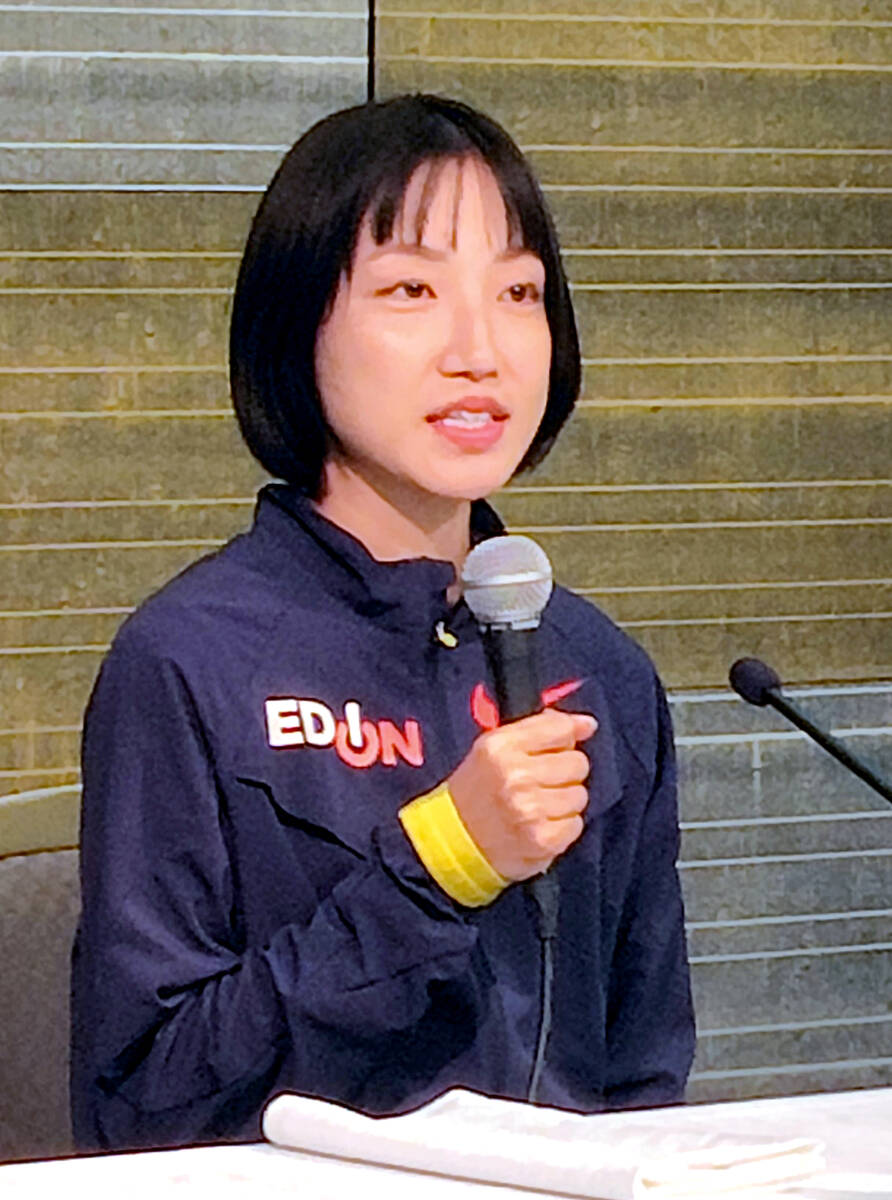 大阪国際女子マラソンで初マラソン日本最高、日本歴代6位となる2時間19分57秒をマークし、日本選手トップの4位となった矢田みくに(26)=エディオン=が26日、大阪市内で会見した。