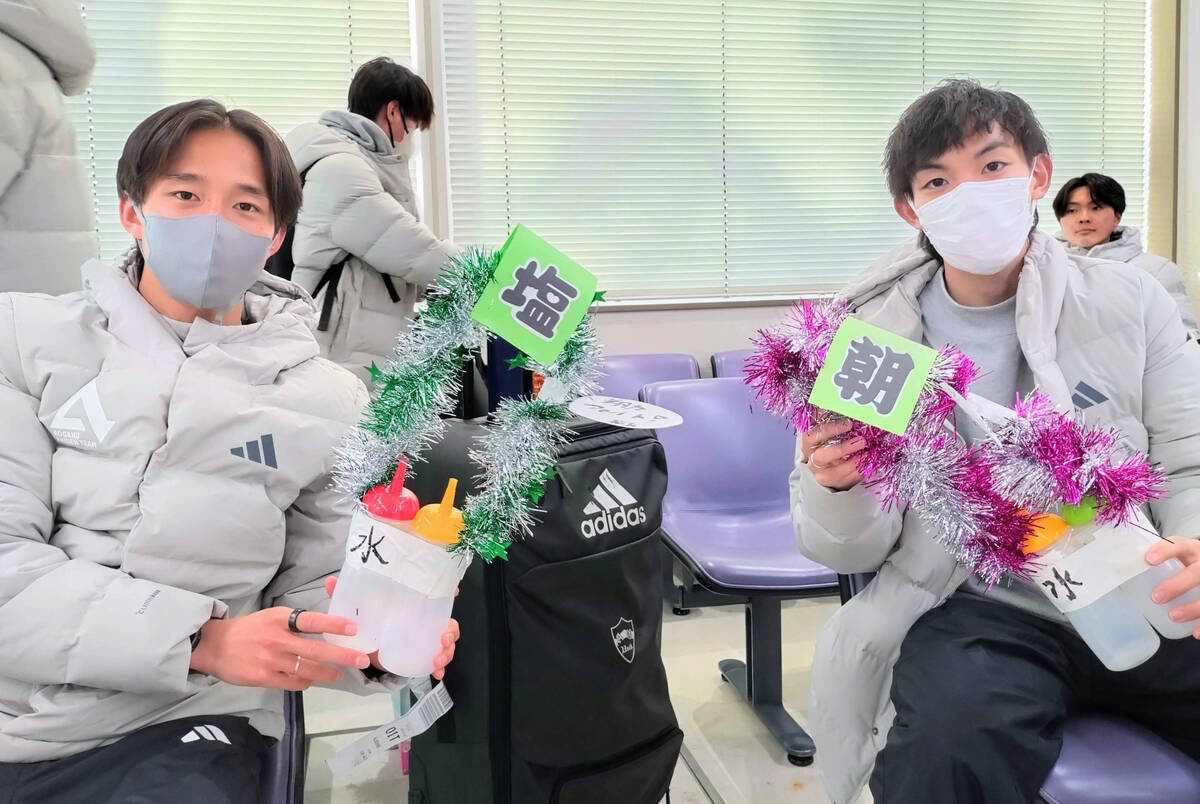 黒田朝は「朝」、塩出は「塩」など、各選手を表す一文字が大きく書かれた給水ボトルを準備。「女子マネジャーがつくってくれました」と塩出は感謝して話した。各ボトルにはチームメートからのメッセージも書き込まれており、まさに「力水」となる。