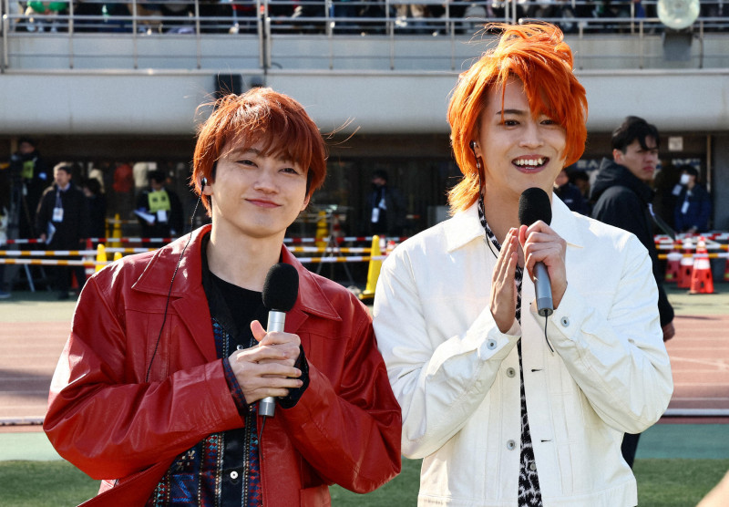 9人組の男性ダンスボーカルグループ「超特急」のユーキさん(31)とタカシさん(29)が1日、第74回別府大分毎日マラソン大会(毎日新聞社など主催)の中継番組に生出演した。