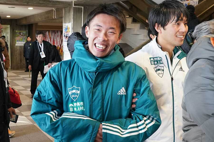 「止まってしまおうかと思った」。そう振り返るほど後半は厳しい展開に。それでも沿道から応援を背に、懸命に腕を振った。「本当にあの声援に支えられて最後まで出し切れました」。ゴール後は仲間に支えられながら会場を後にした。レース後には原晋監督からも労われ、笑顔を見せていた。