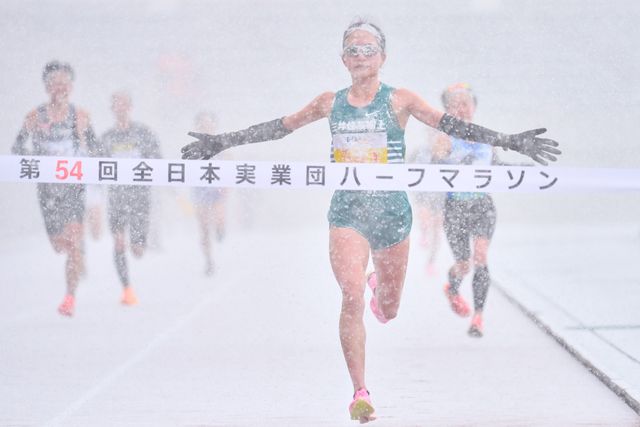 樺沢和佳奈「サングラスに雪が積もった」悪天候に負けず1時間9分20秒の自己新V 男子は平山大雅がトラック勝負で制す【全日本実業団ハーフマラソン】