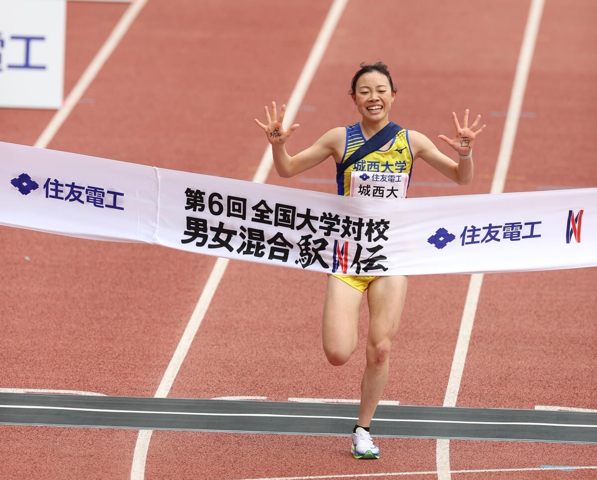 「第6回全国大学対校男女混合駅伝」(15日、大阪・ヤンマースタジアム長居および長居公園内特設コース、関西学生陸上競技連盟、関西テレビ放送、産経新聞社主催、住友電工特別協賛)前回大会優勝の日体大ら上位12チームをシード校とし、選考校9チームと関西学連選抜の計22チームが参加。6区間20キロを男女3名ずつが走る。男子は1、3、5区を、女子は2、4、6区を担当し、城西大が58分30秒で初優勝を果たした。