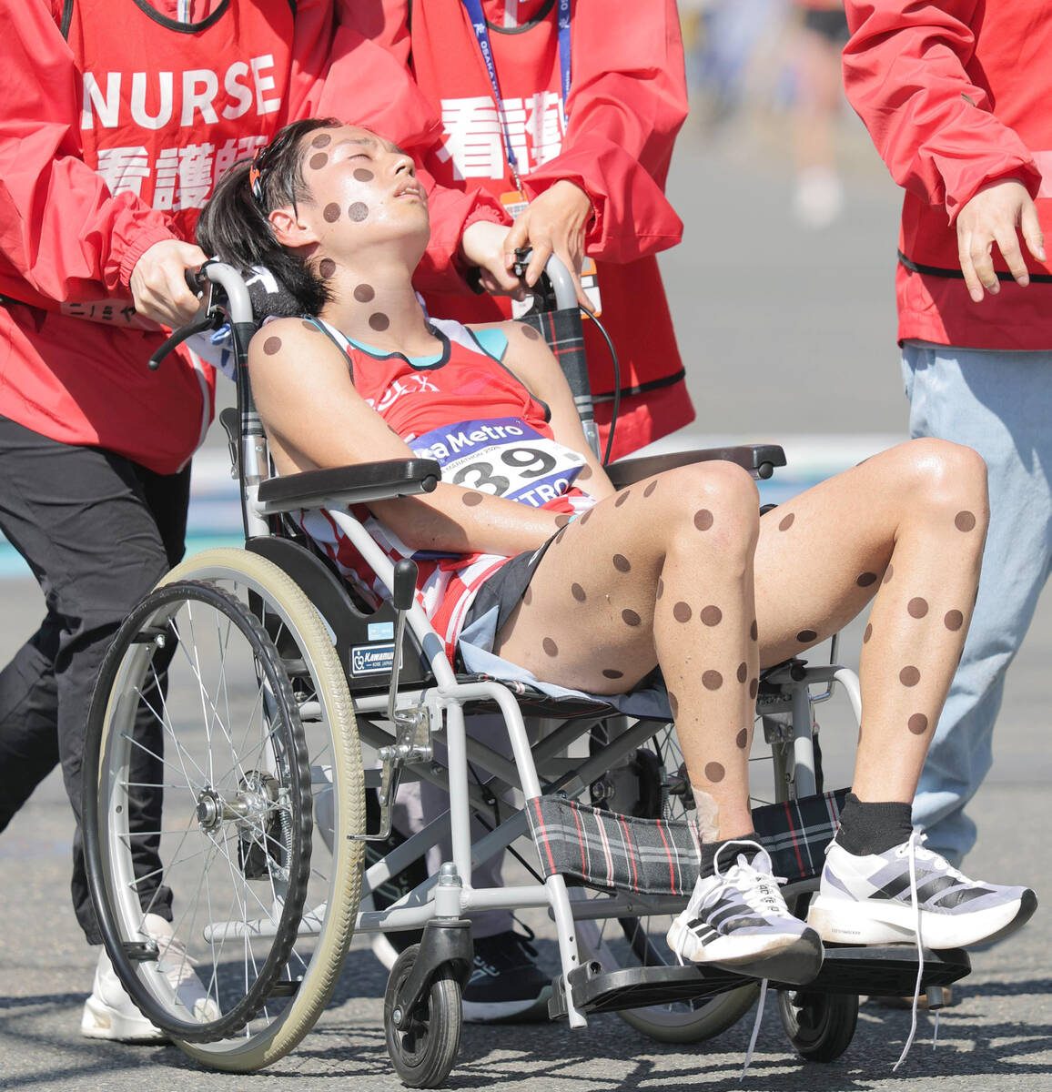 吉田響は顔を含め全身に丸いテープを貼りつけた。レース途中では専任の滝川大地コーチにVサインを送り、給水用のコップはゴミ箱にちゃんと捨てるなど、すべてにおいて存在感を発揮した。終盤にマラソンの洗礼を浴びたが、初挑戦で爆発力と魅力は見せつけた。