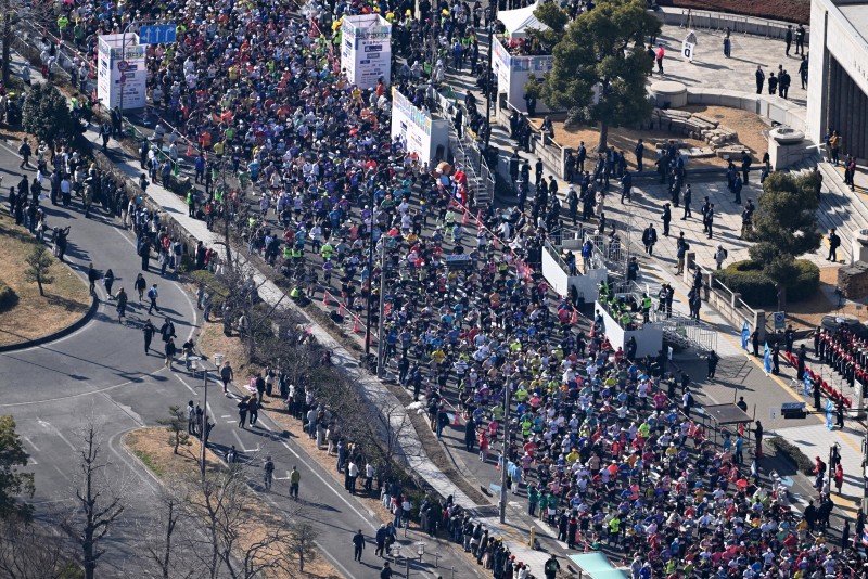 大阪マラソン2026は22日午前、大阪府庁前をスタートし、社会人1年目で初マラソンの吉田響選手(サンベルクス)が8キロ付近で先頭集団から飛び出し、中間点を1時間1分54秒の日本新記録ペースで通過した。