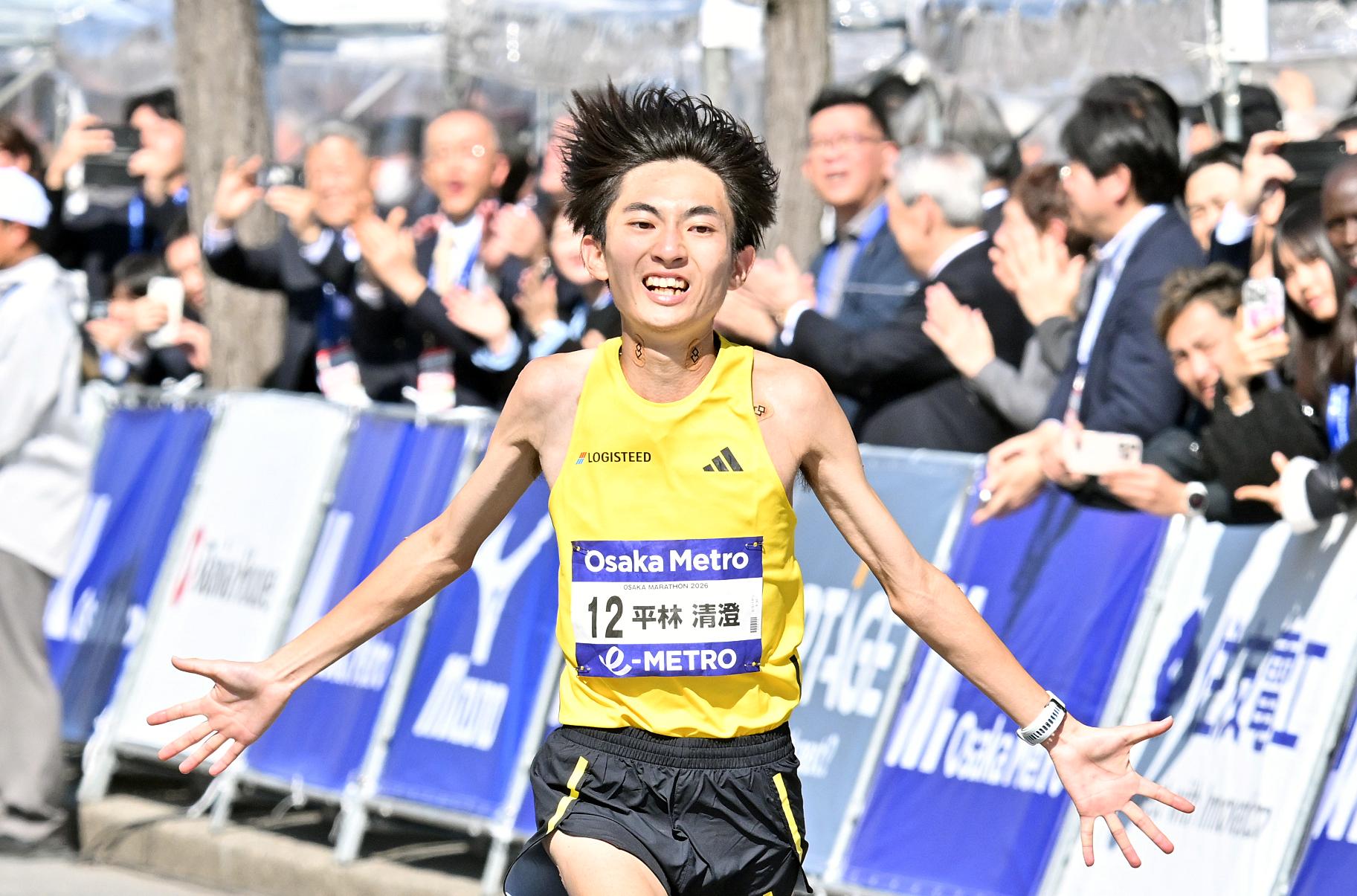 大阪マラソン2026は、好天下、日本代表経験者から初マラソンを含む新鋭まで、多士済々がスタートした。中間点通過1時間01分54秒と、2時間3分台ペースで独走していた吉田響(サンベルクス)を、30kmすぎから追った平林清澄(ロジスティード)が37km付近で逆転。自己ベストの2時間06分14秒で日本人トップの5位でフィニッシュ。大会前に宣言していたMGCファイナル出場権の獲得と自己ベストを達成し、「ひと安心」と笑みをこぼした。