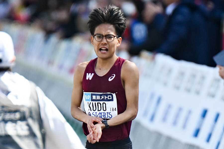 東京マラソンが1日、東京都庁~東京駅前・行幸通りのコースで行われ、“山の名探偵”こと工藤慎作(早稲田大3年)が2時間7分34秒で日本人5位の全体20位でゴールした。初マラソンでトップ集団に食らいつき、2028年ロサンゼルス五輪代表選考会のマラソングランドチャンピオンシップ(MGC、2027年秋開催)の出場権を獲得した。