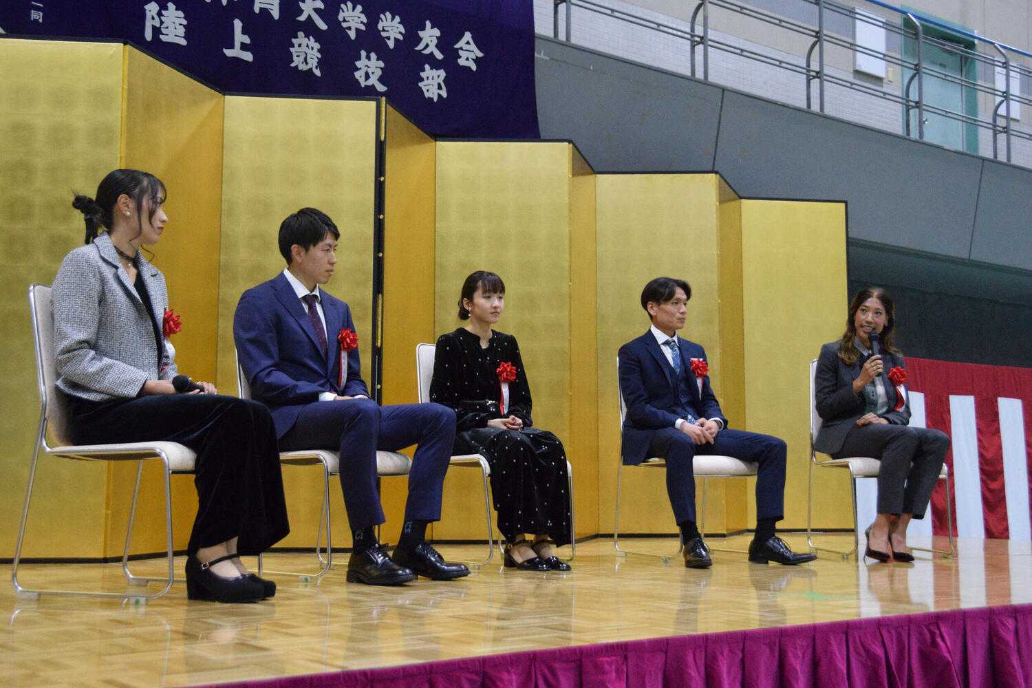 トークショーに参加した女子短距離の君嶋愛梨沙(30=土木管理総合)、女子3000メートル障害日本記録保持者の斎藤みう(23=パナソニック)、男子マラソン歴代3位の池田耀平(27=花王)の卒業生3人が、それぞれ新シーズンへの抱負を語った。
