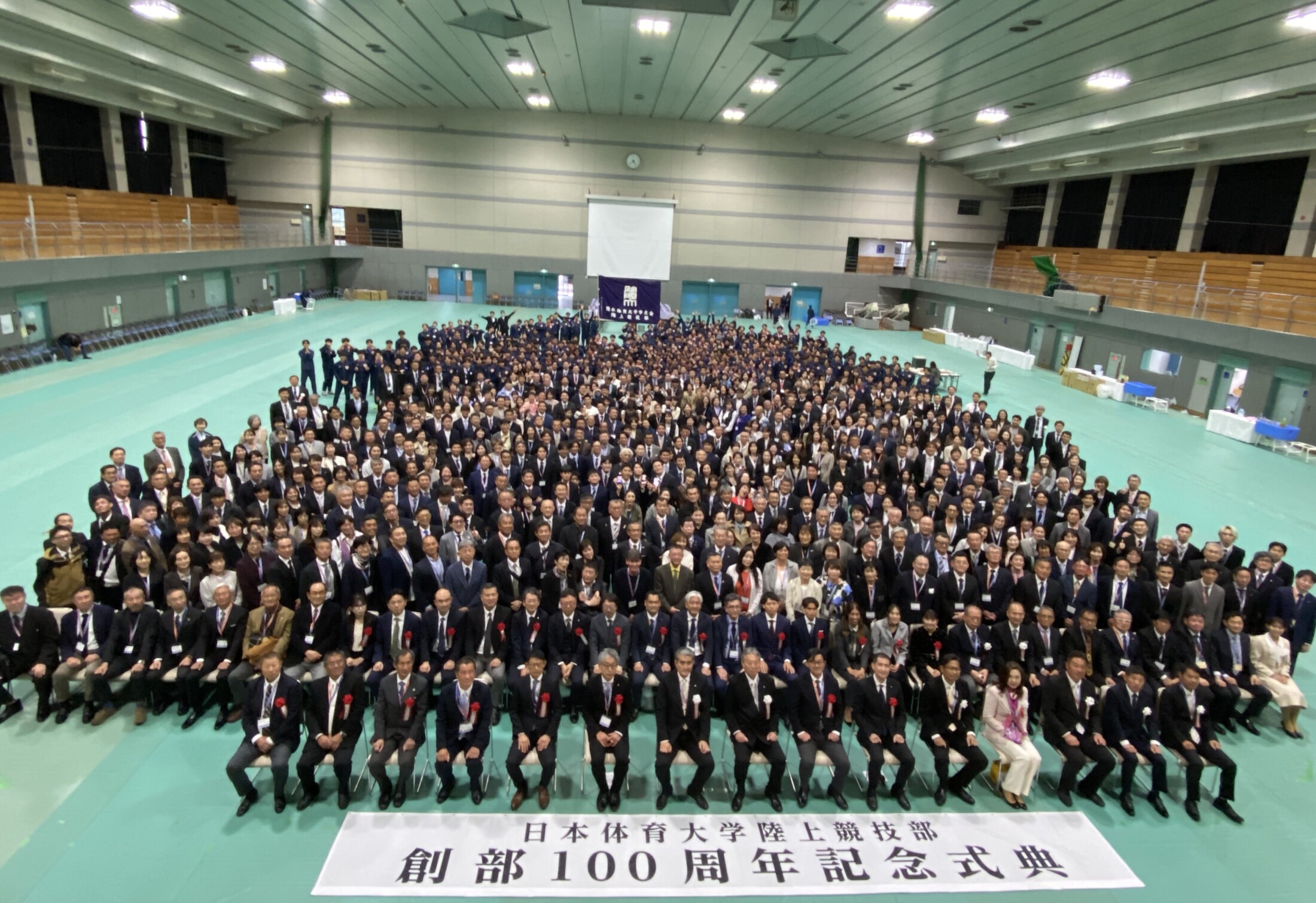 日本体育大学陸上競技部創部100周年記念式典が3月7日、横浜・健志台キャンパスの米本記念体育館で行われた。式典には、卒業生やその家族、来賓、在校生を合わせ約1000人が出席。体育館中央にはトロフィーや年代別にまとめられたパネルが展示されたほか、卒業生によるトークショーや在校生によるエッサッサも披露された。