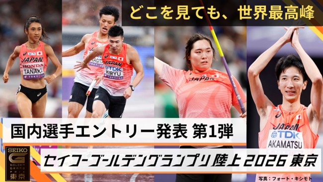 5月17日(日)にMUFGスタジアム(国立競技場)で開催される「セイコーゴールデングランプリ陸上2026東京(セイコーGGP)」の国内選手エントリー第1弾が発表になった。東京2025世界陸上の日本代表選手29名の出場が決定している。